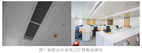 在内装设计中,设计师将部分区域的风口、灯具、喷淋、烟感、喇叭等有机整合在同一区域较常见,形成风口灯具集成模块(带)。而在许多工程施工中未完全按设计理念进行,高档装修的吊顶配备的往往是常规的风口,出现风口与吊顶风格不搭,规格尺寸不吻合,色泽不一,视觉舒适感欠缺等缺点。为避免这些问题,装配式内装工程的风口划分到由装修实施单位制作范围,纳入装配式吊顶系统共同深化设计,形成与吊顶系统安装配套、色泽统一的集成模块。
